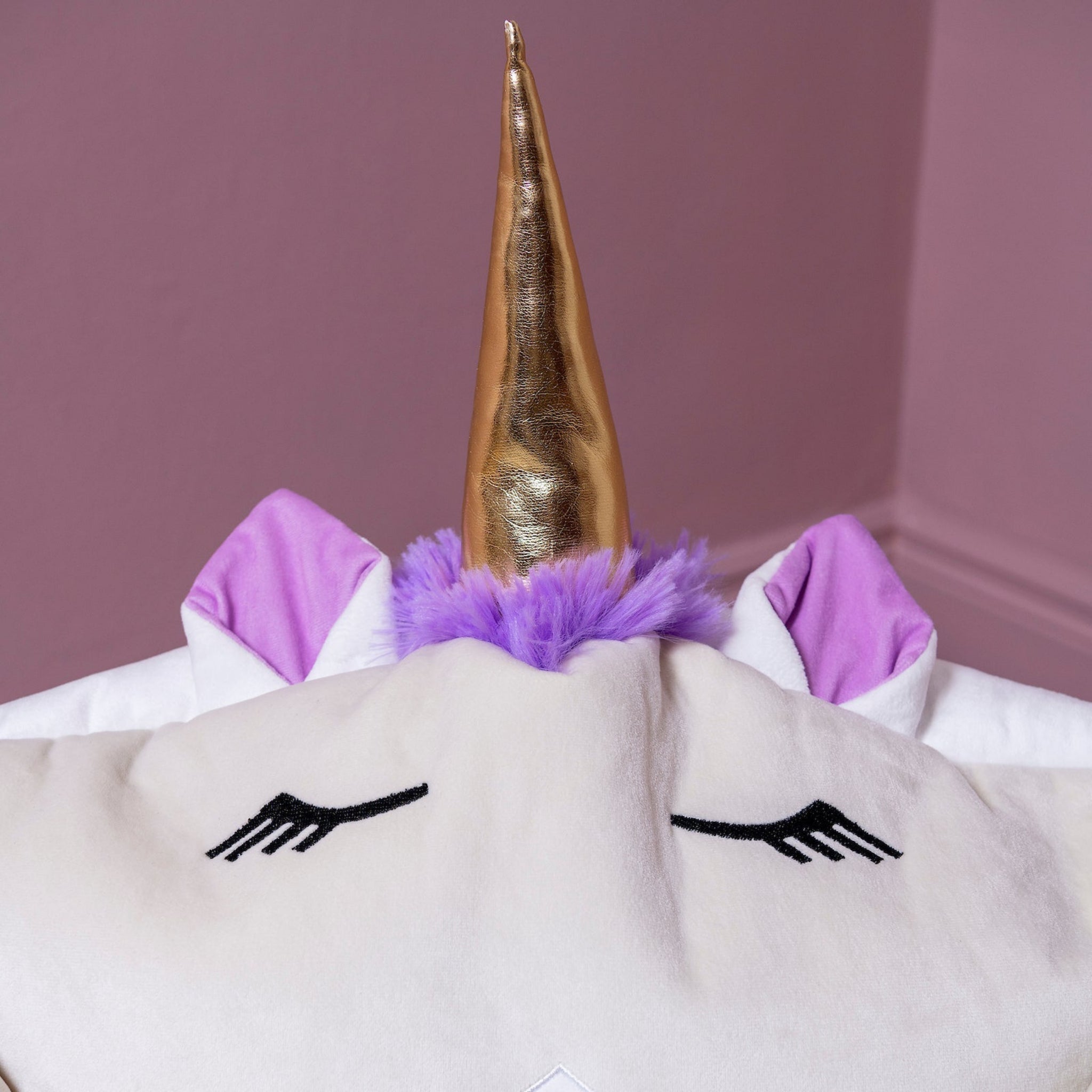 Fertiggestellt aus superweichem Samtmaterial und gefüllt mit Polystyrolkügelchen, macht Stella zum bequemsten Einhorn im Land.